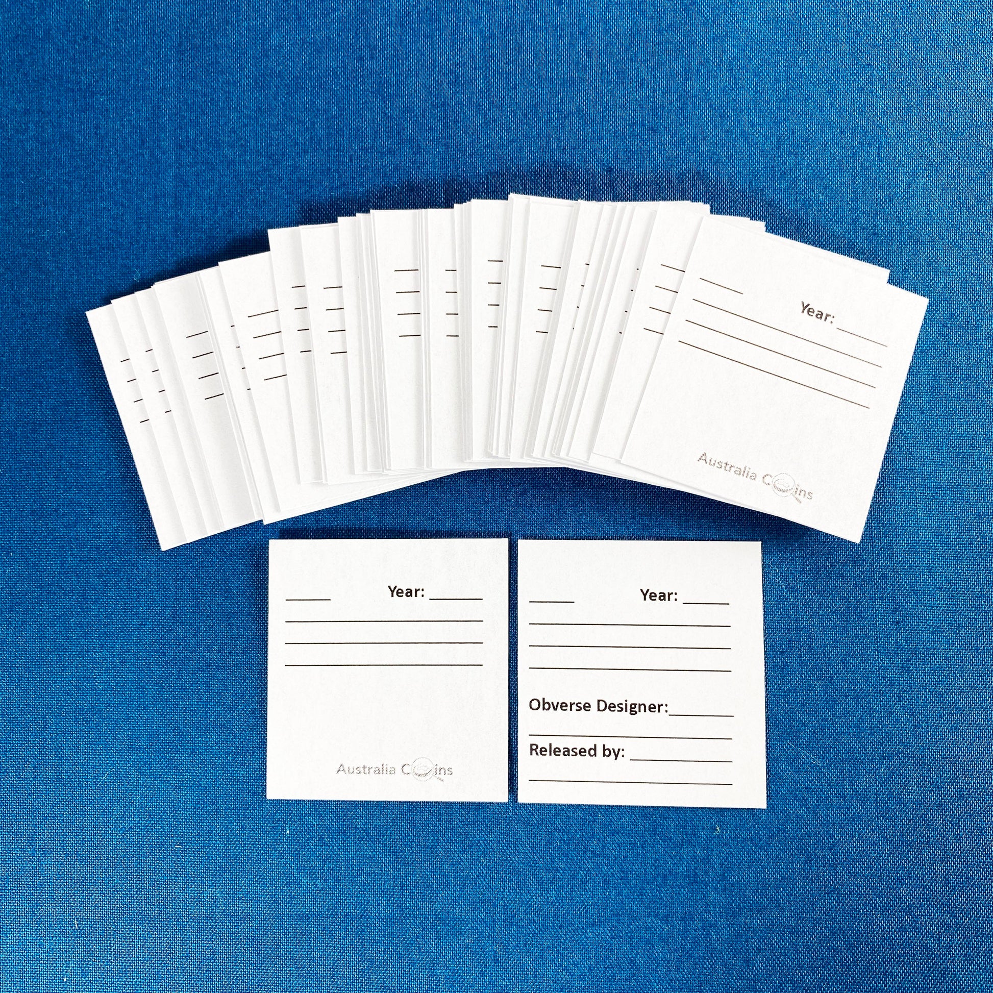 The kit includes 200 blank inserts where you can add details of the coins in your collection. They are pre-printed with a template for you to fill in. Each insert slides into the coin flips to sit opposite your coin, showing the details.